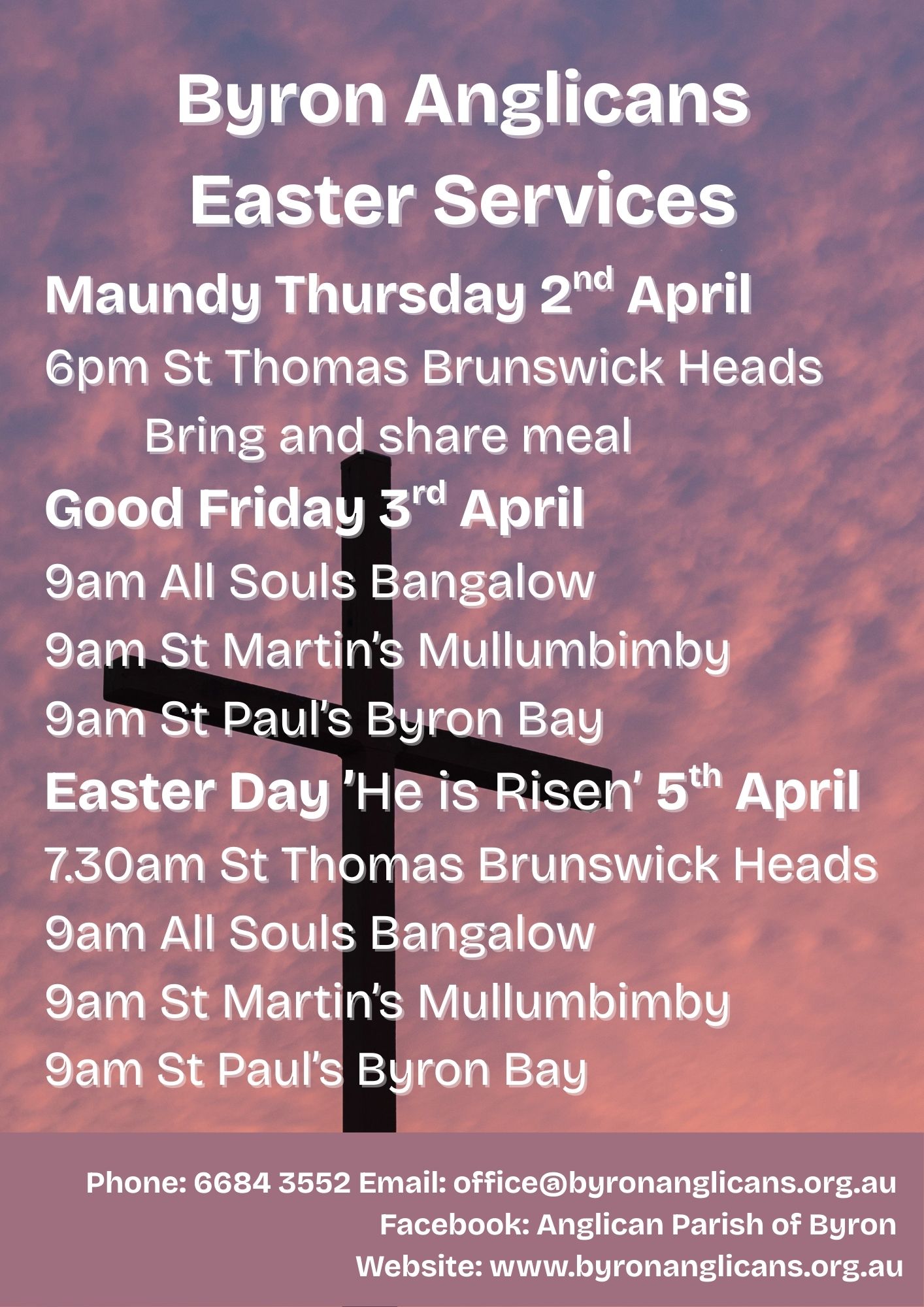 The Byron Ministry Region encompasses the townships of Bangalow, Byron Bay and Mullumbimby and their surrounding areas. It is a beautiful diverse region, which includes some spectacular beaches, amazing National Parks; traditional farm properties and of course some macadamia and coffee plantations.